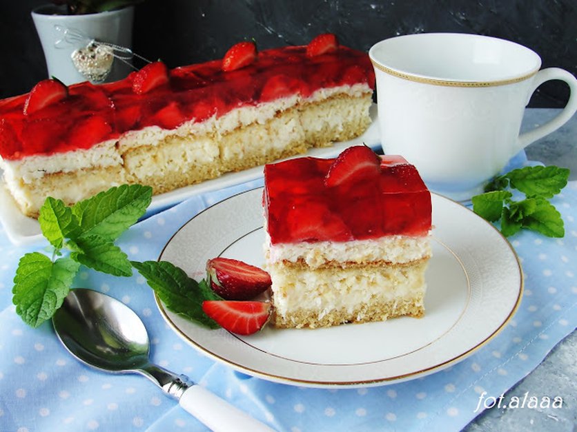 Ciasto z kremem rafaello i truskawkami