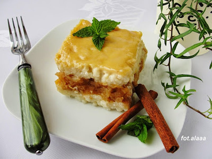 Ryż z jabłkami i polewą ze śmietany