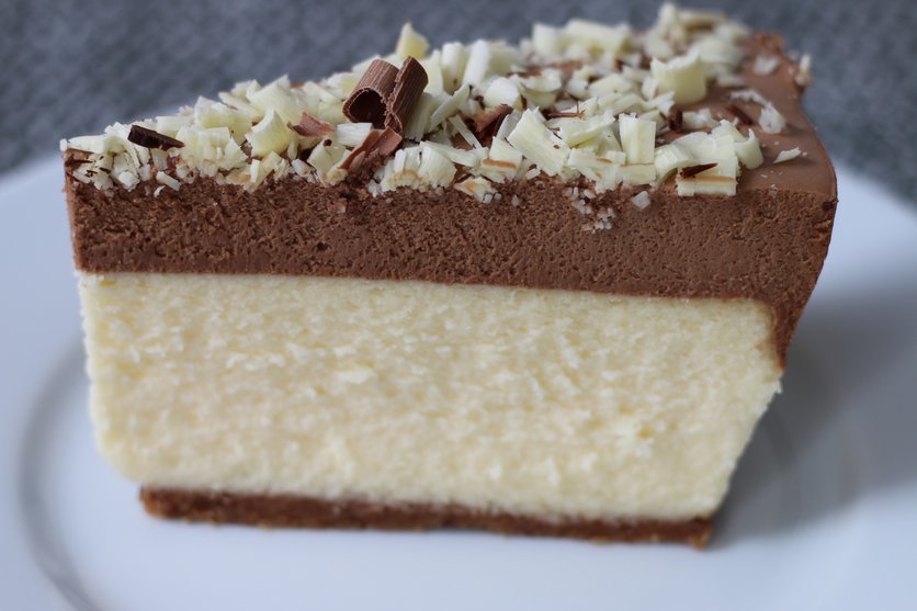 Kremowy sernik z białą czekoladą i sosem karmelowym