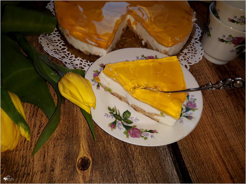 Sernik na zimno z brzoskwiniami i galaretką