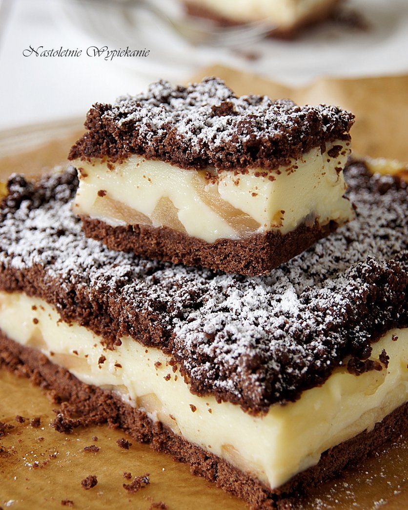 Czekoladowe ciasto z budyniem i jabłkami