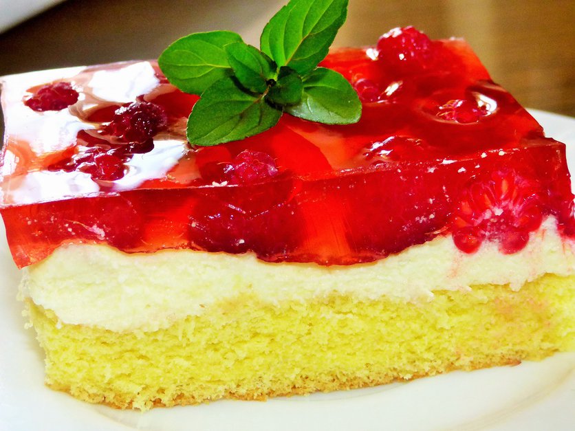 Ciasto z kremem budyniowym i malinami