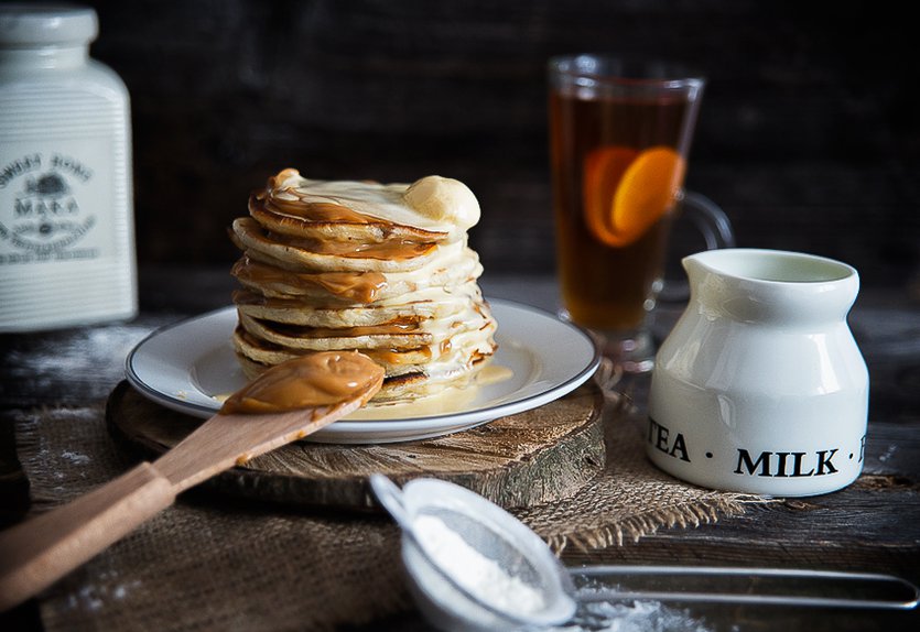 Placki cynamonowo-orzechowe z kajmakiem i lodami