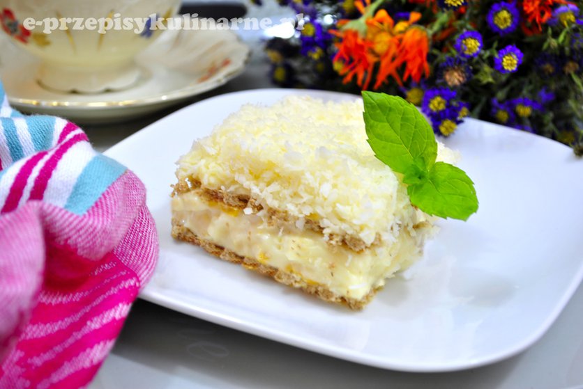 Wafelkowe ciasto z kokosem i żurawiną