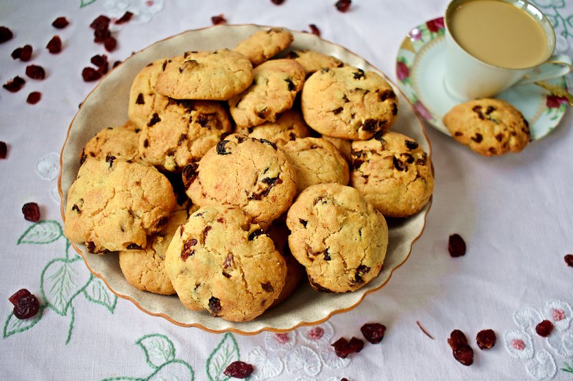 Kruche ciasteczka z żurawiną i płatkami kukurydzianymi