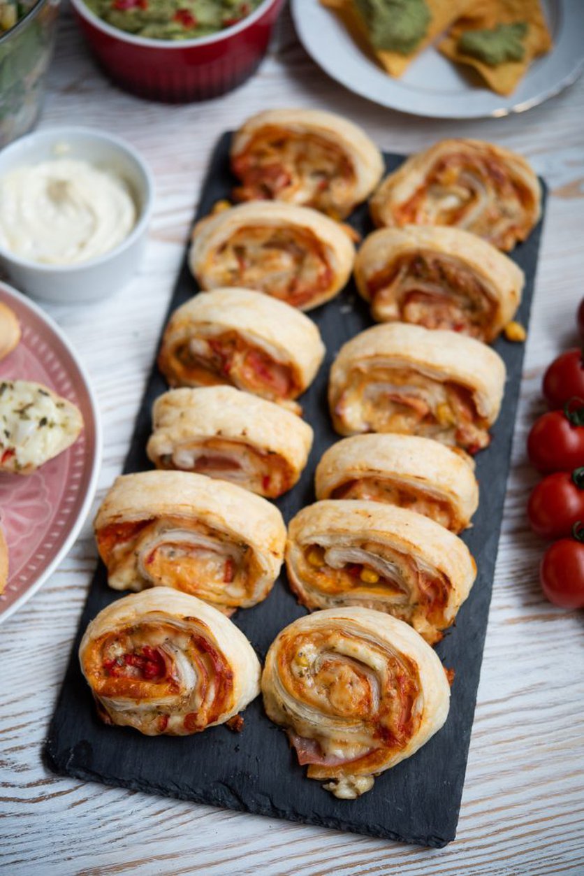 Ślimaczki z ciasta francuskiego z serem i szynką