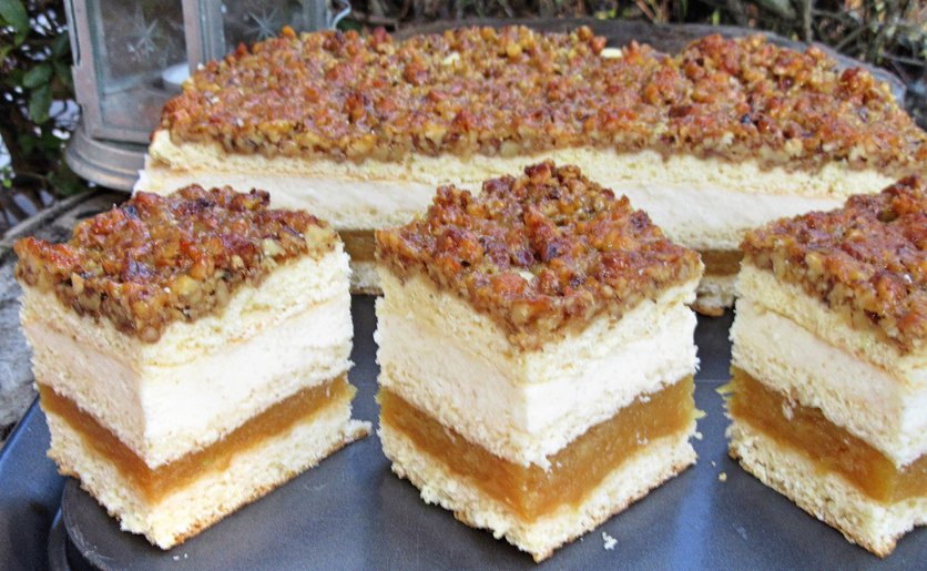 Pyszne ciasto Słodka Ula-przekładane z kremem grysikowym, jabłkami i orzechami