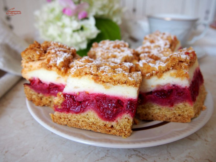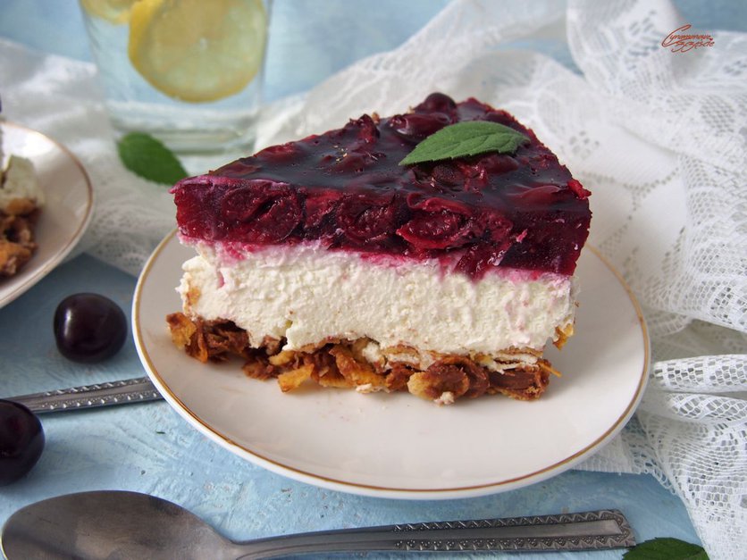 Sernik na zimno na chrupiącym spodzie z wiśniową frużeliną