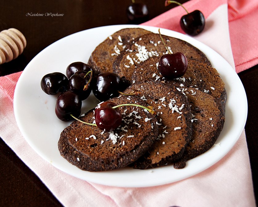 Kakaowe placuszki na serwatce z czereśniami