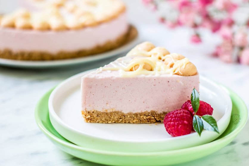 Malinowy Niby Sernik Na Zimno Z Polewą Z Białej Czekolady