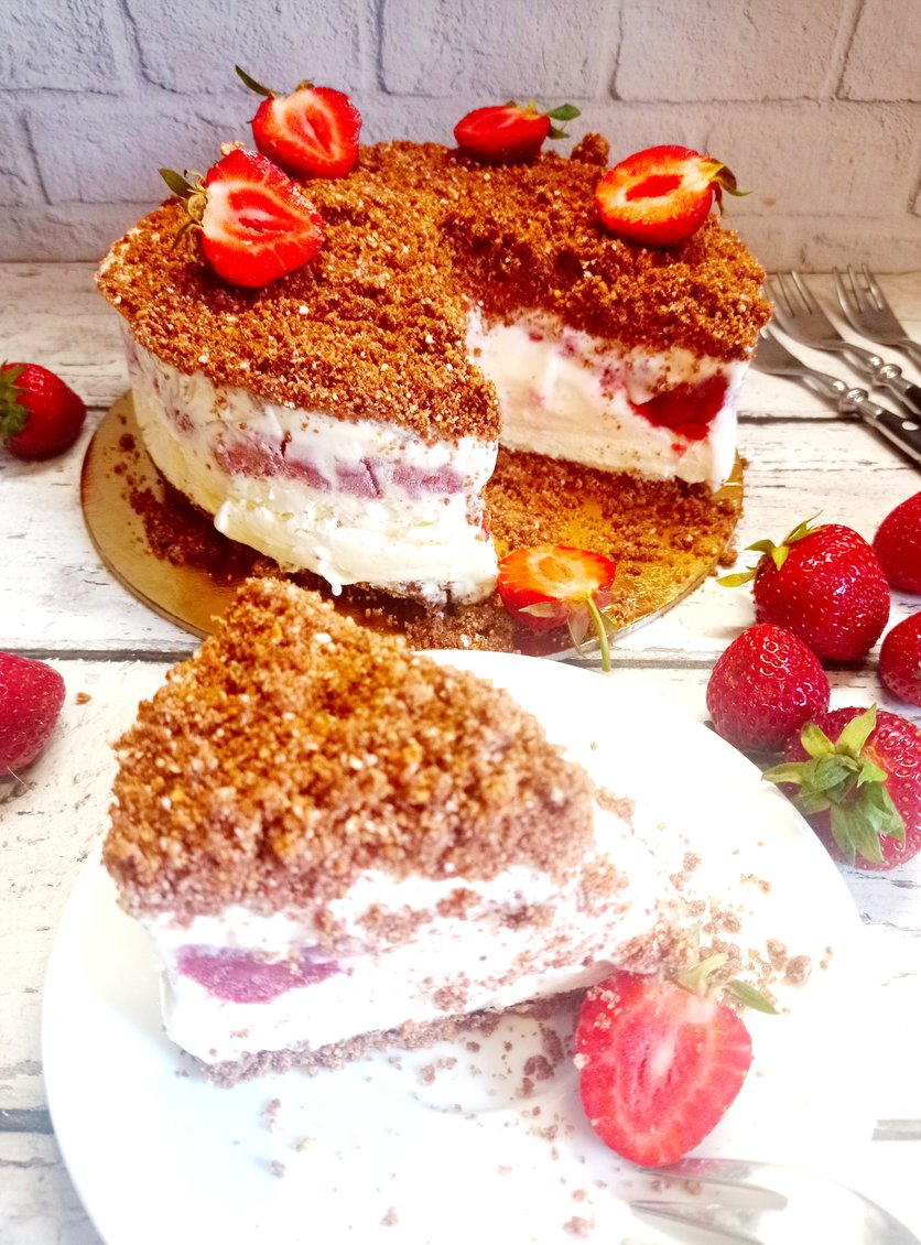 Tort lodowy z owocami i czekoladowo-orzechową kruszonką