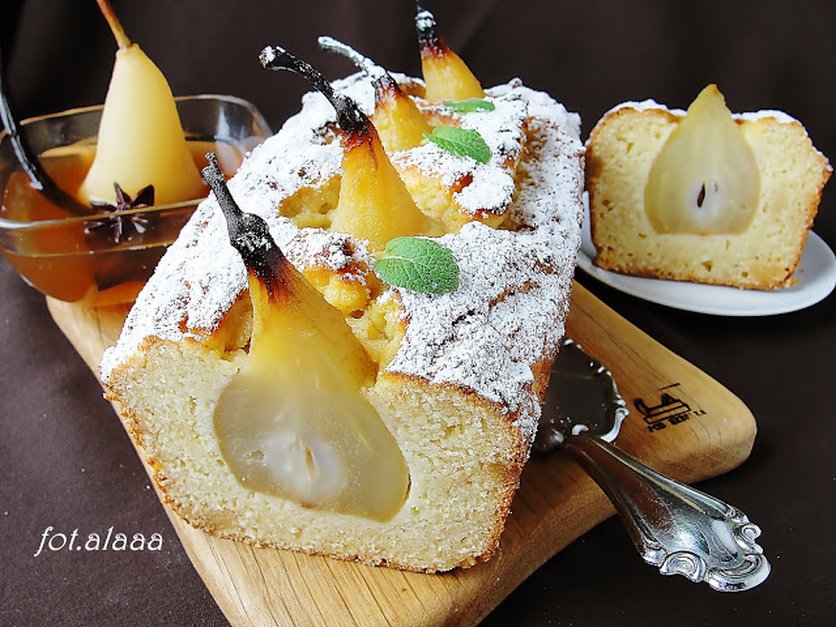 Ciasto marcepanowo kokosowe z gruszkami