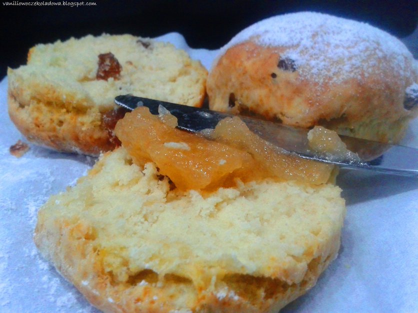Scones- proste, puszyste bułeczki (na maślance) z rodzynkami