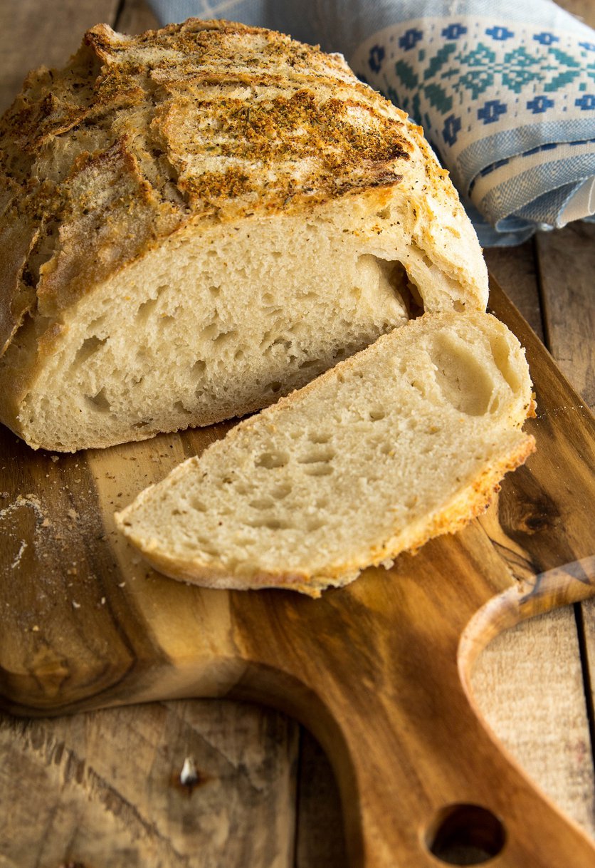 Łatwy chleb bez zagniatania z parmezanową posypką