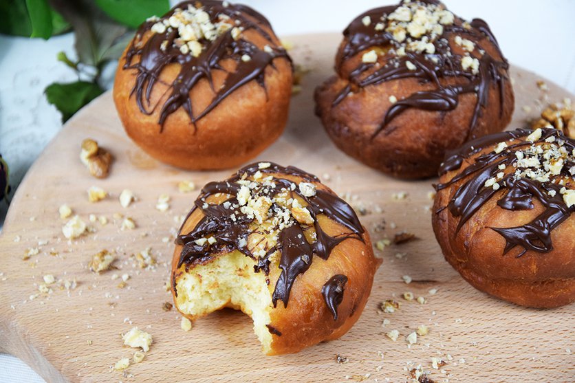 pączki z czekoladą i orzeszkami