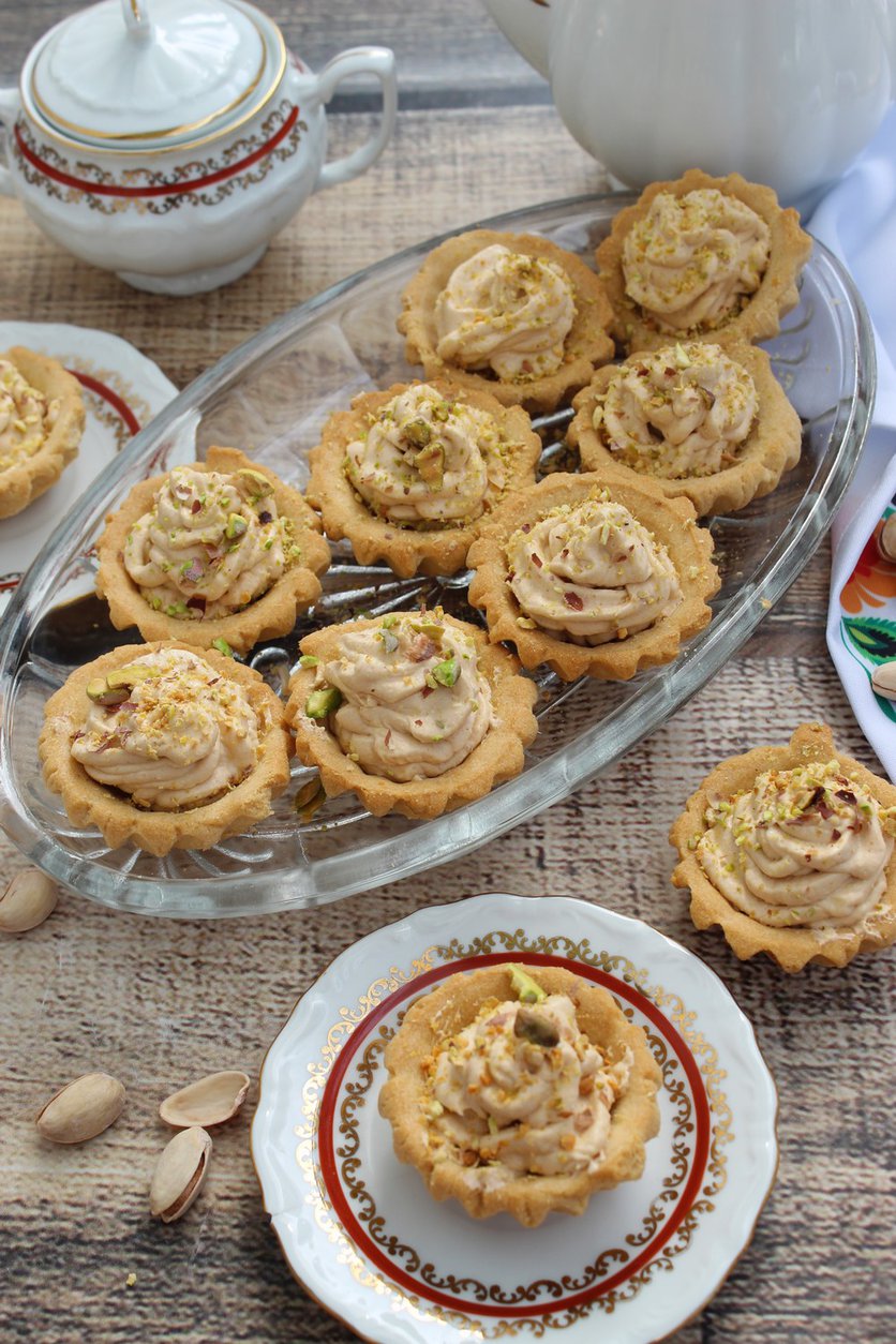 Kruche babeczki z kremem toffi i pistacjową posypką