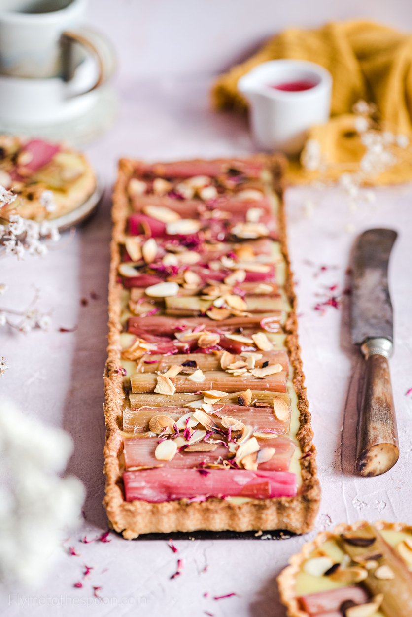 WEGAŃSKA TARTA Z RABARBAREM I KREMEM BUDYNIOWYM