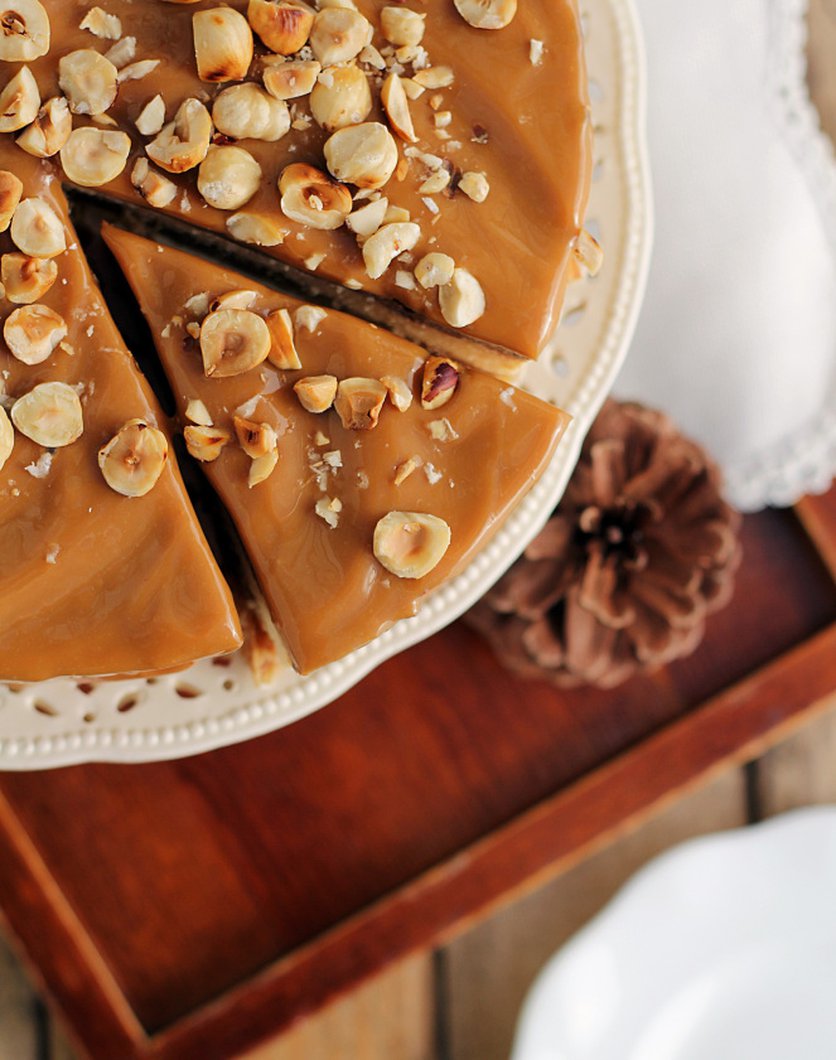 Sernik karmelowo-czekoladowy z orzechami laskowymi
