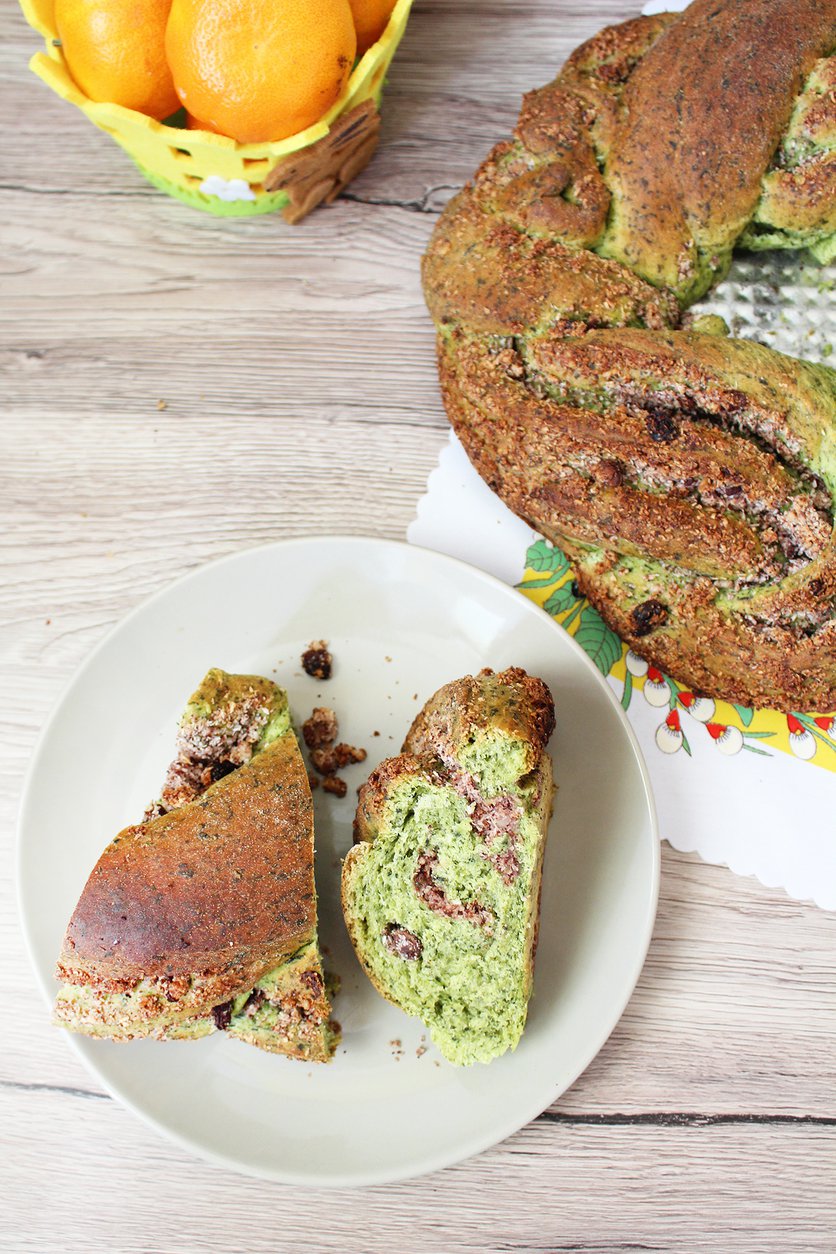 Drożdżowy wieniec wielkanocny ze szpinakiem i bakaliami
