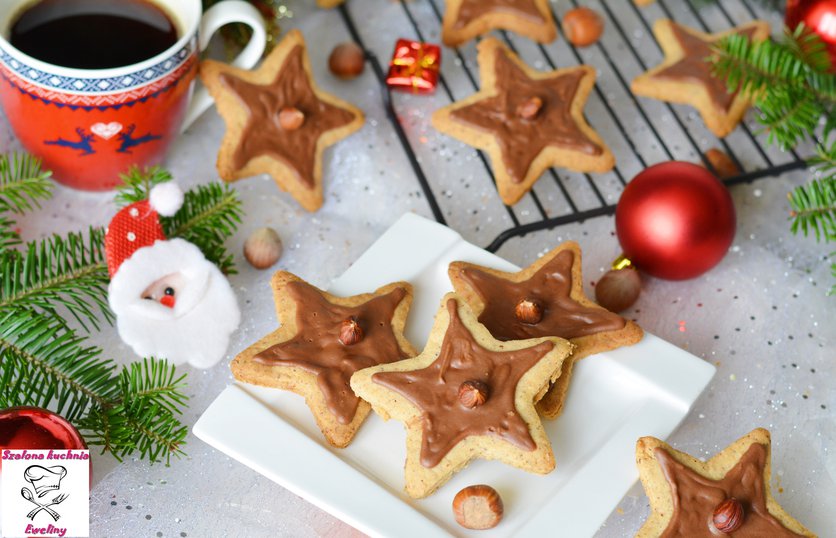 Ciasteczka gwiazdki z orzechami i czekoladą