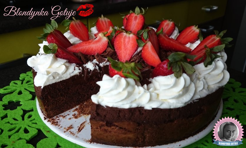 Tort Podwójnie Czekoladowy z Bitą Śmietaną i Truskawkami