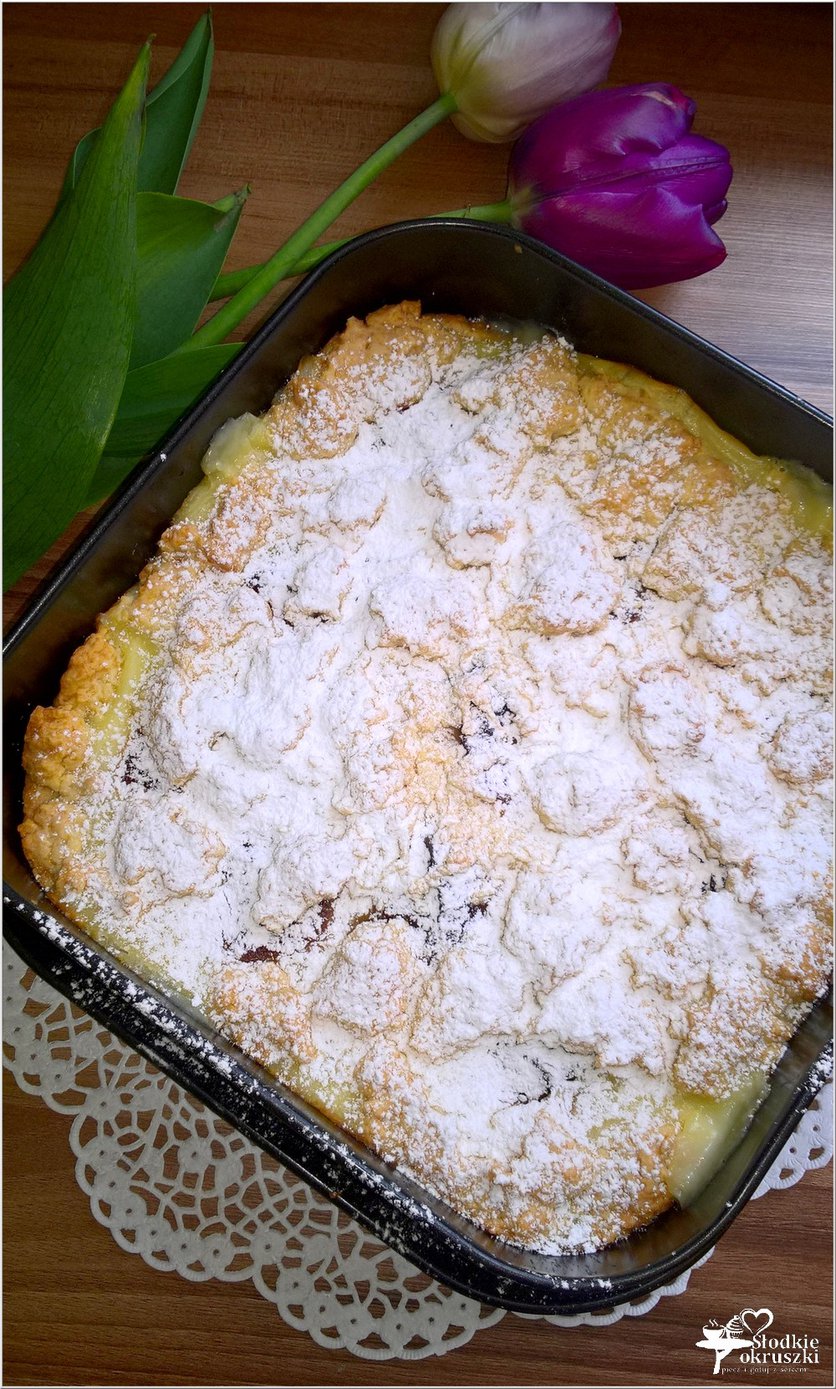 Kruche ciasto z budyniem i marmoladą (można dodać zamiennie owoce)