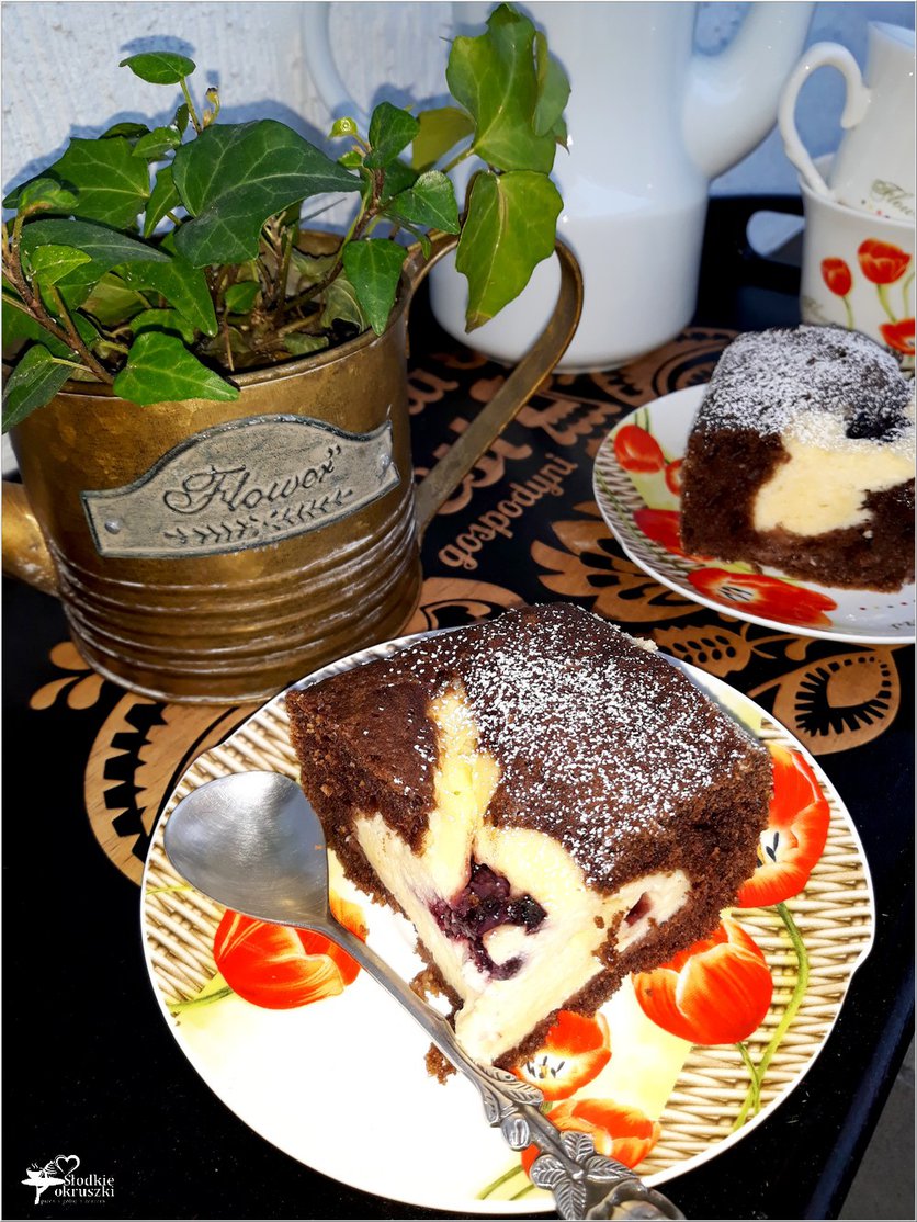 Rodzinne ciasto serowo-czekoladowe z dżemem porzeczkowym