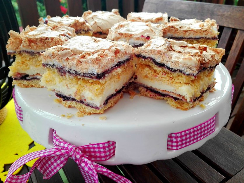 Ciasto budyniowe z dżemem i bezą
