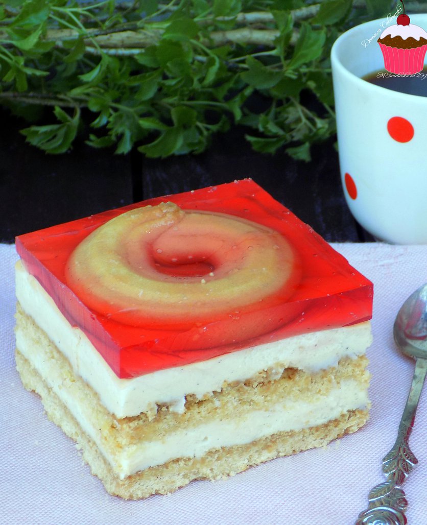 sernik gotowany z galaretką i ciasteczkiem