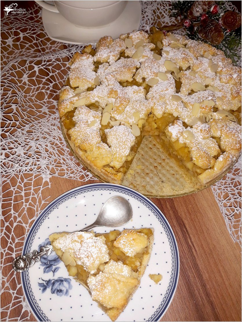 Szybka szarlotka na kruchym cieście z migdałową nutą