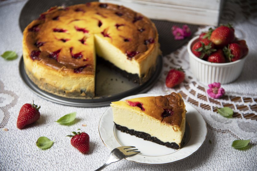 Obłędny sernik na kakaowym spodzie z truskawkami!