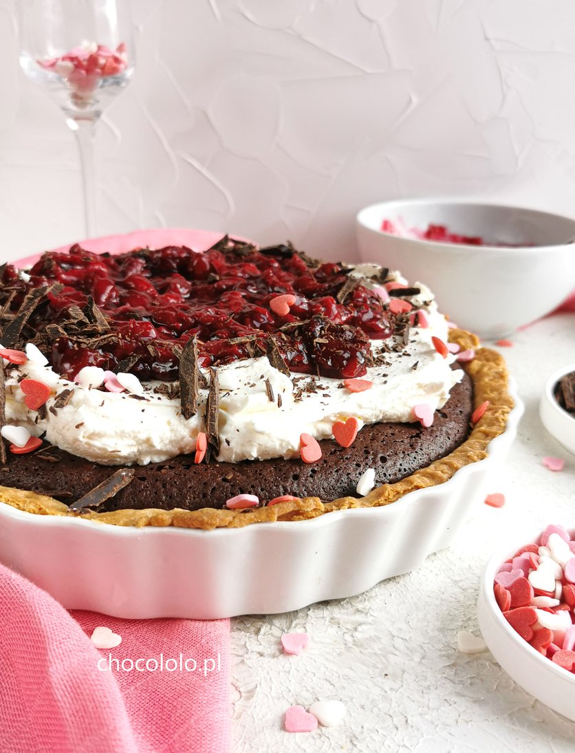 Walentynkowa tarta brownie z wiśniami
