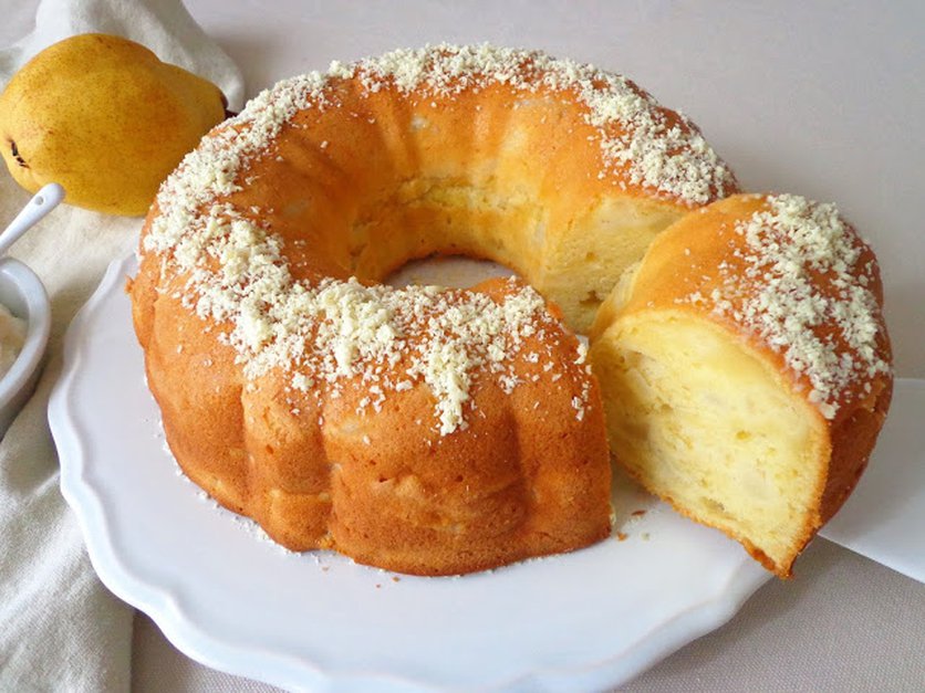 Ciasto gruszkowe z białą czekoladą i mascarpone, bez masła