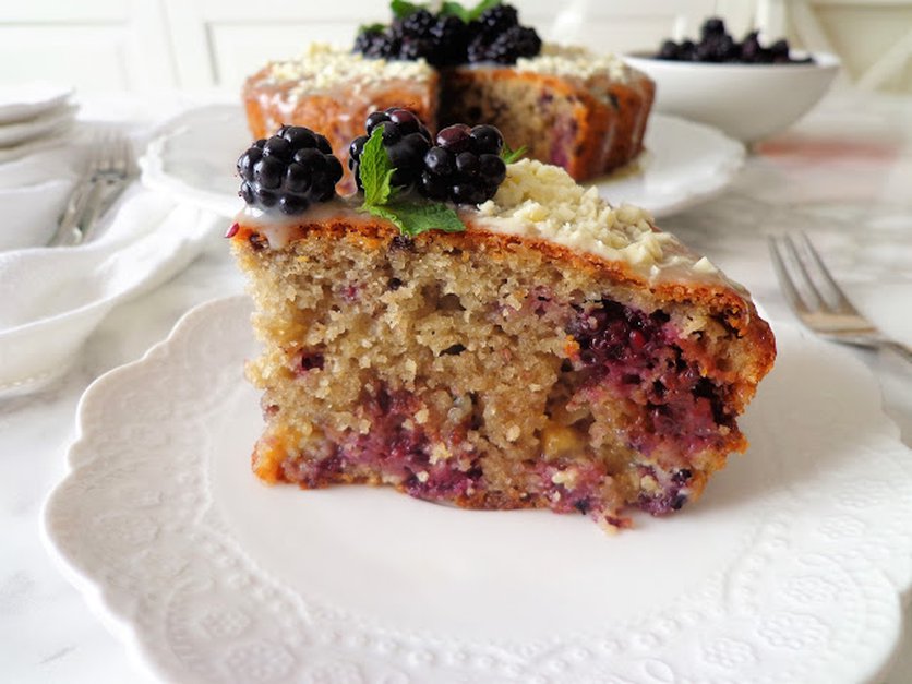 Jeżynowe ciasto z białą czekoladą