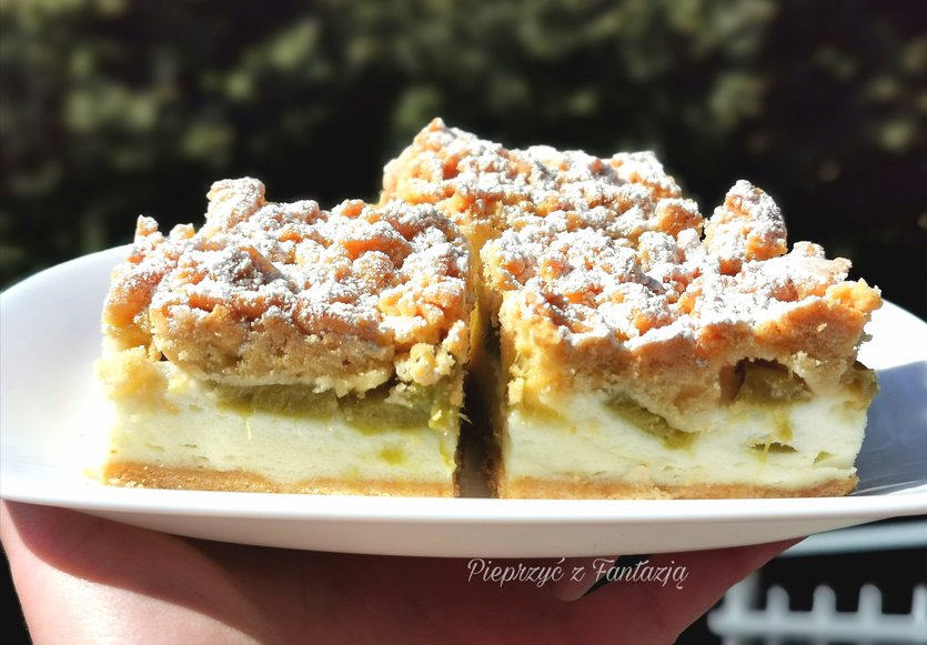 Kruche ciasto z rabarbarem i budyniową pianką