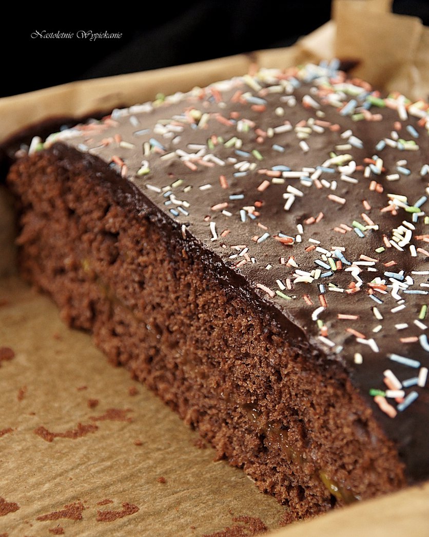 Piernikowo-czekoladowe ciasto z dżemem morelowym