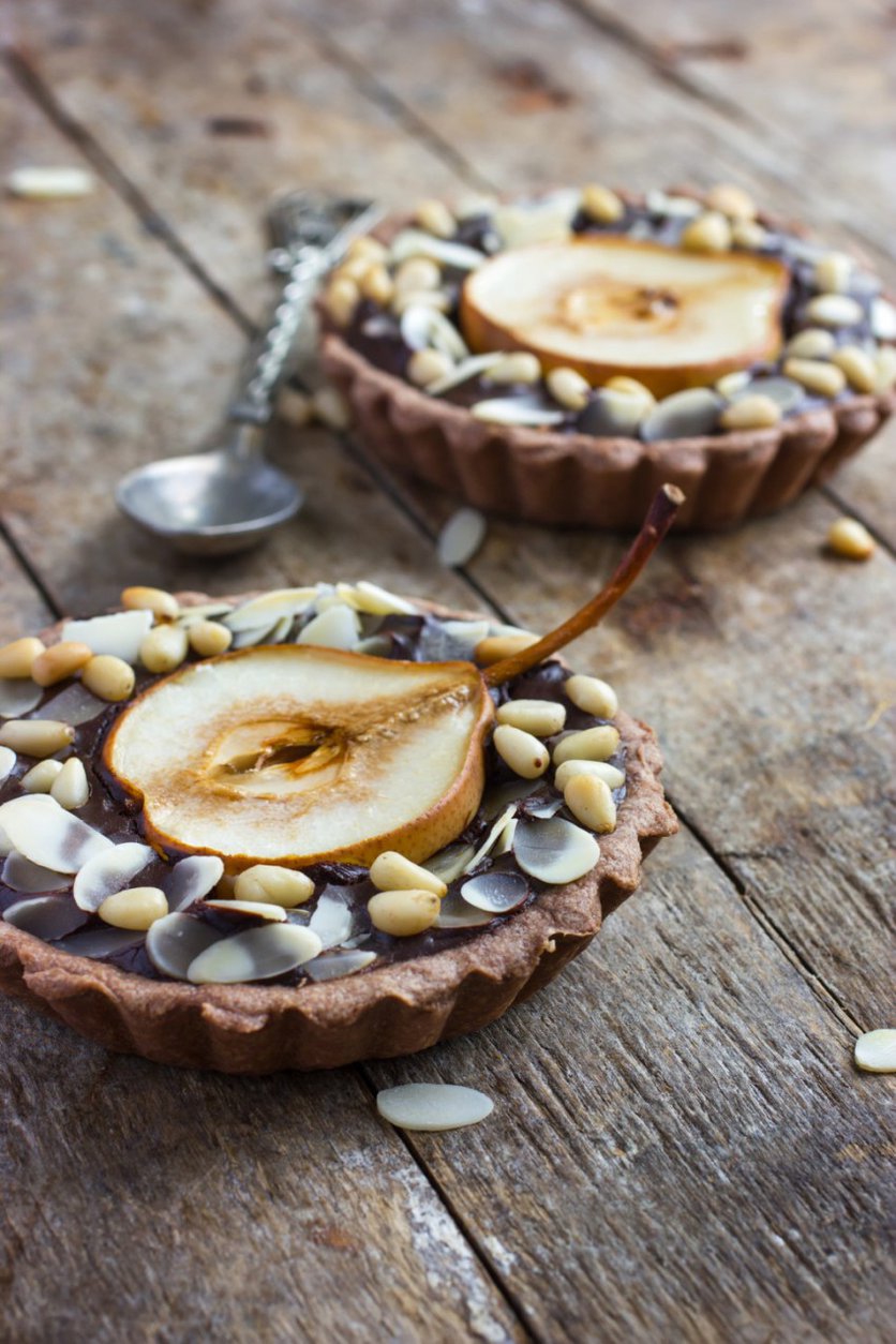 czekoladowe tartaletki z gruszkami