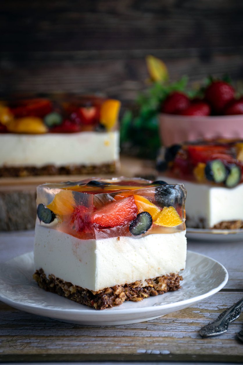 Śmietanowiec z białą czekoladą i owocami