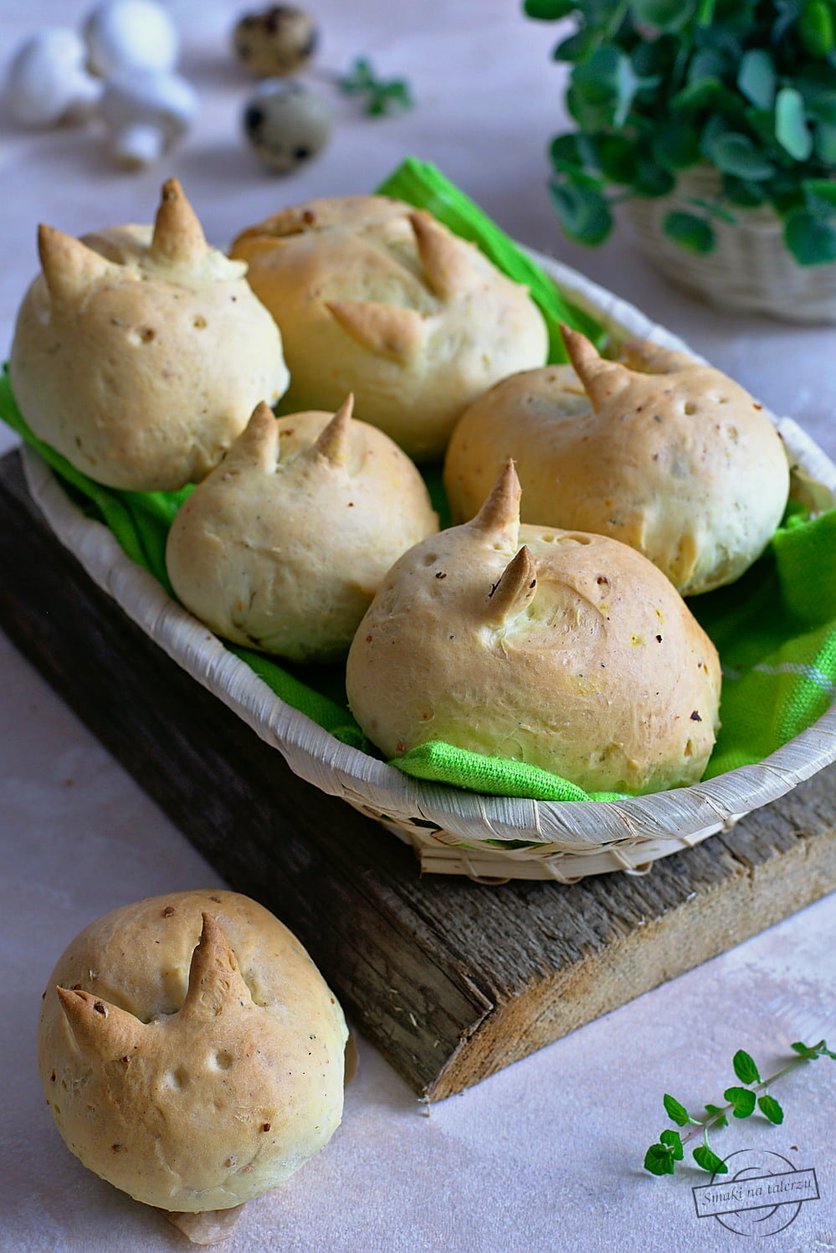 Drożdżowe bułeczki-zajączki (z pieczarkami i przepiórczym jajkiem)