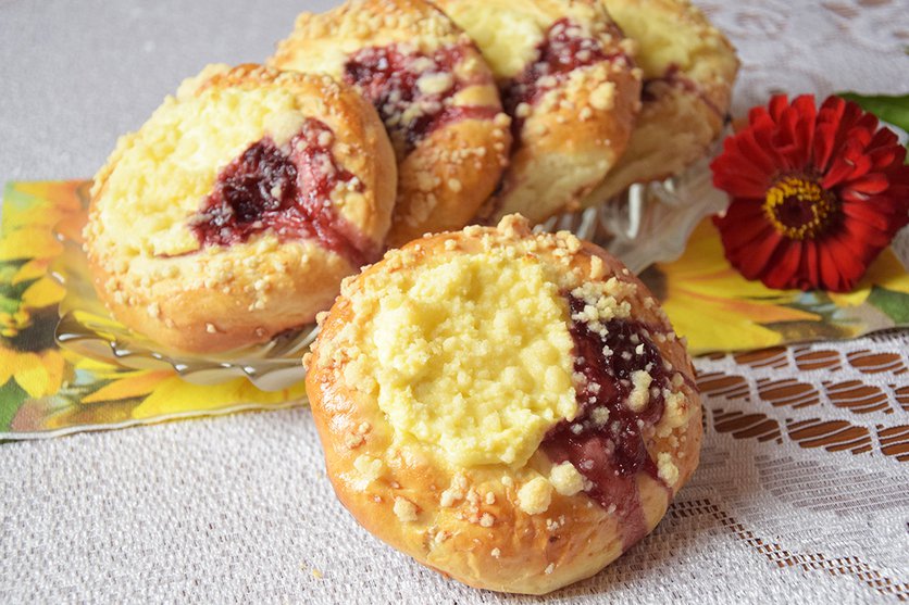 Drożdżówki z serem, dżemem i kruszonką