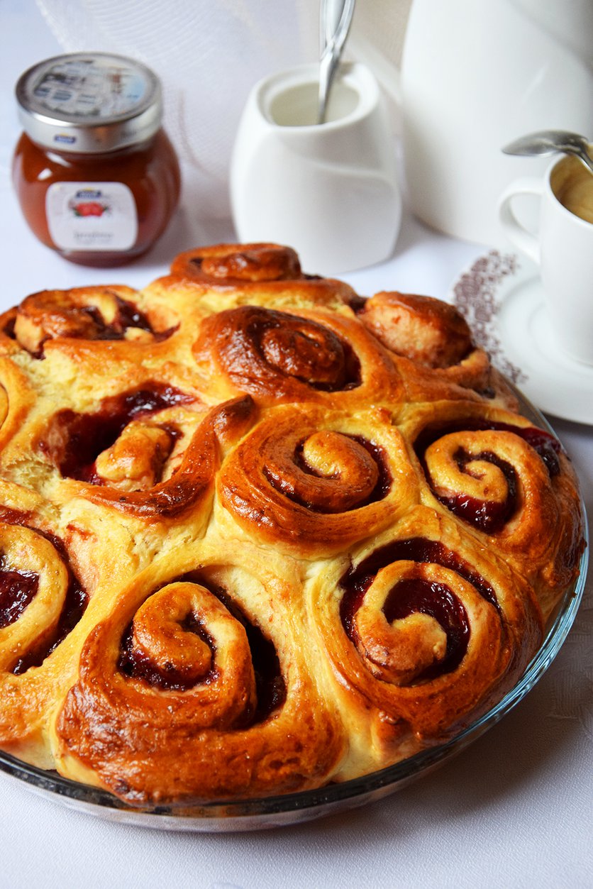 zakręcone drożdżówki z konfiturą truskawkową