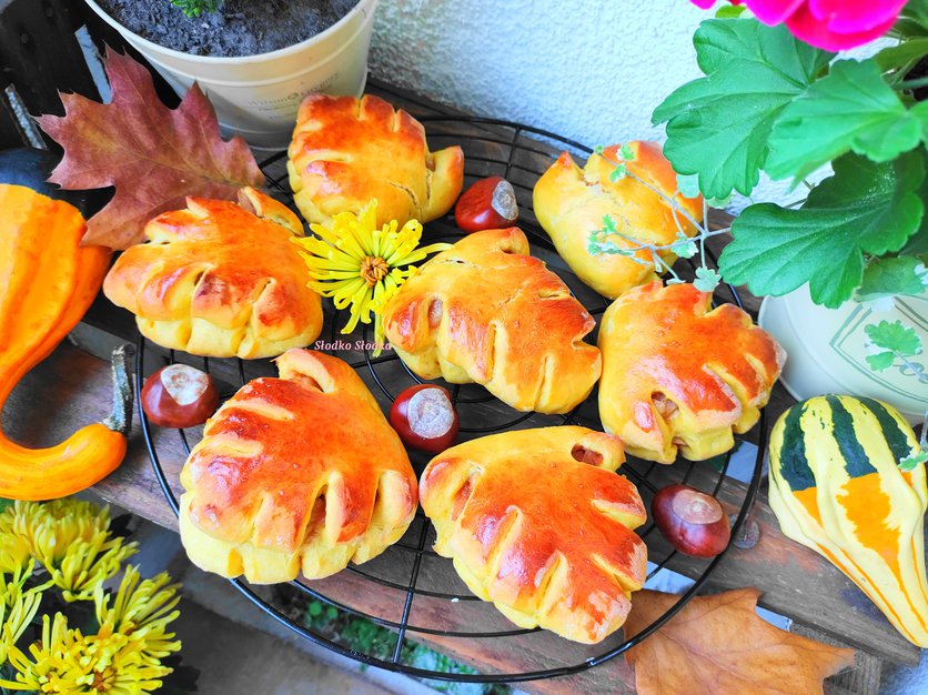 Bułeczki dyniowe – Jesienne liście z prażonymi jabłkami.