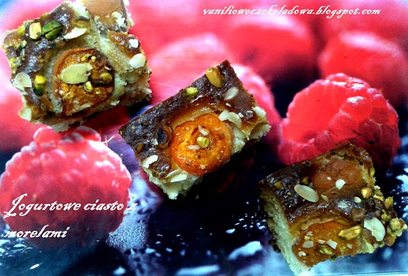 Jogurtowe ciasto z morelami i krokantem pistacjowo-migdałowym