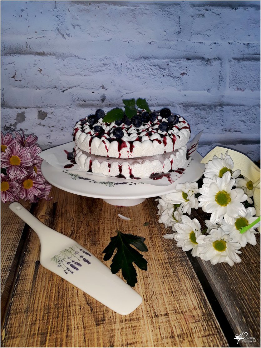 Szybki torcik bezowy z kremem borówkowo-jagodowym