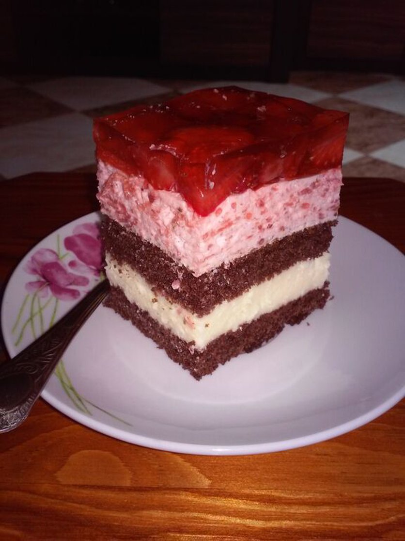Truskawkowe ciasto z pianką i galaretką
