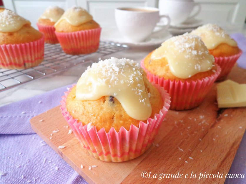 Kokosowe babeczki z białą czekoladą i żurawiną