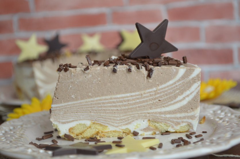 Rolada w kropeczki z musem czekoladowym i nektarynką.
