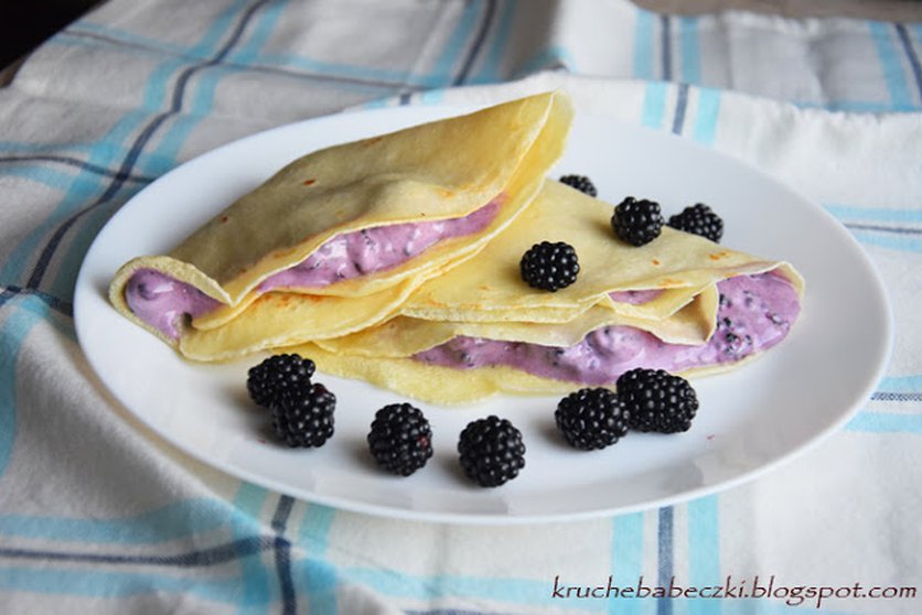 Naleśniki z serkiem, miodem i jeżynami