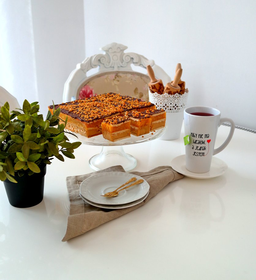 Sernik na zimno z polewą z masła orzechowego