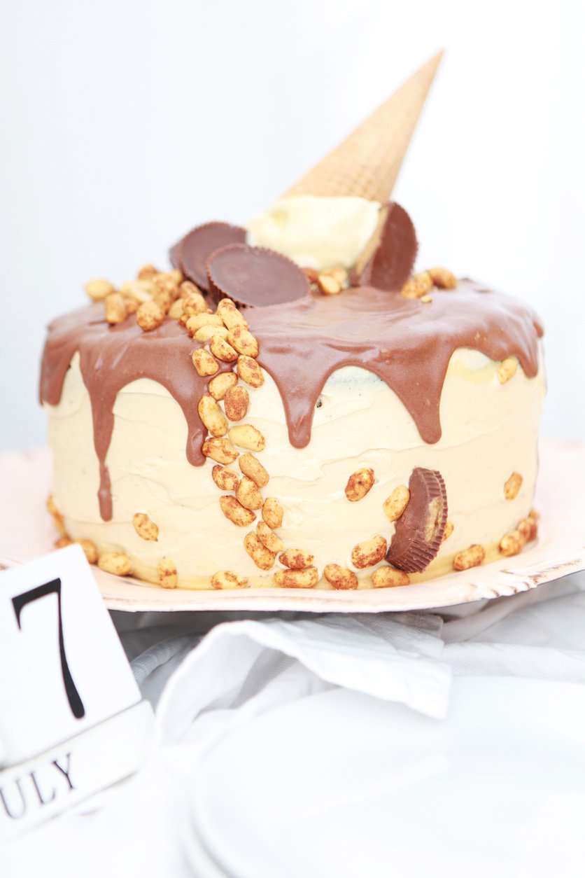 ciasto orzechowe z brzoskwiniami i kremem chałwowym